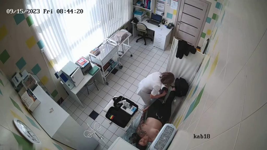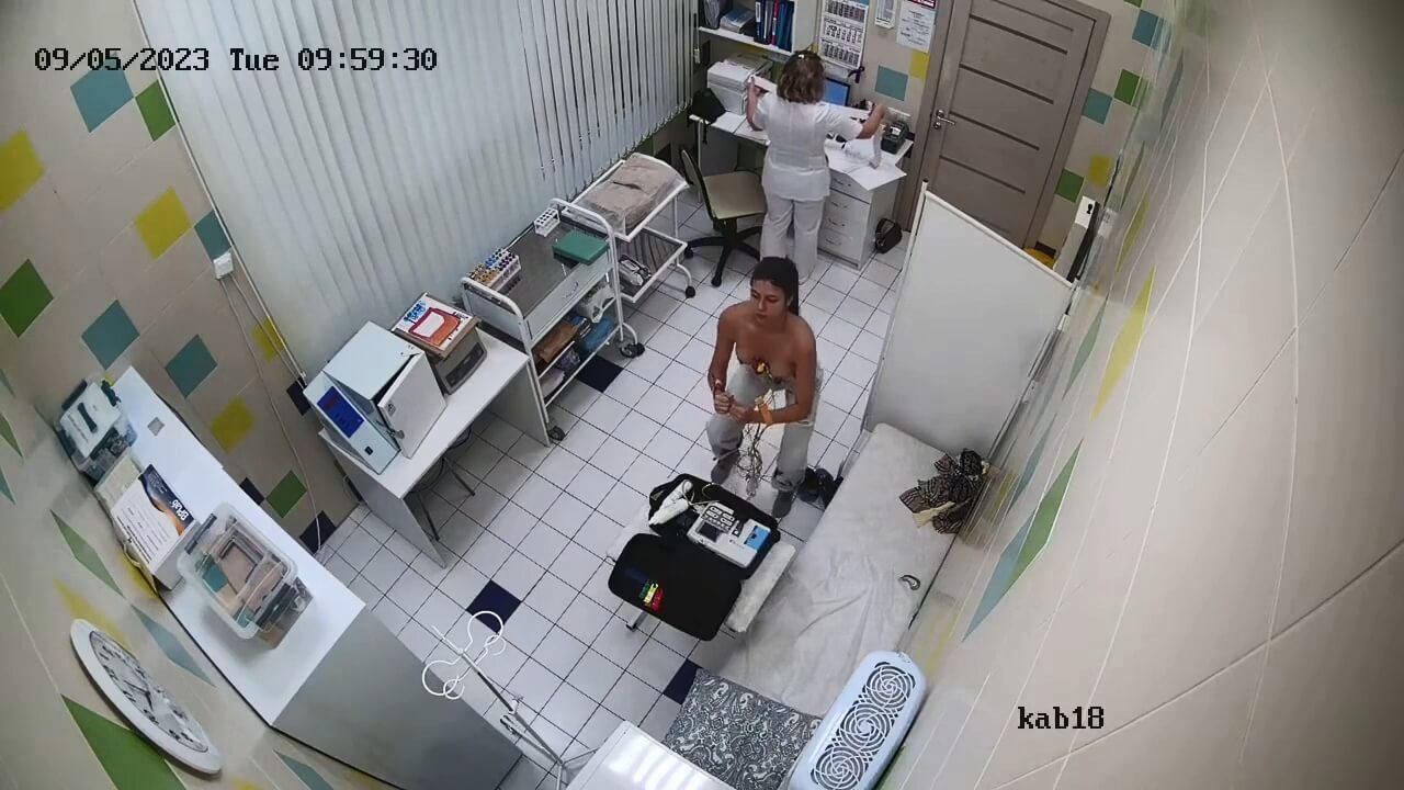 Girl lies sprawled with tits exposed, nipples stiffening as the nurse presses sticky pads to her inked chest. Electrodes cling to her skin, wires snaking down as her breath quickens in vulnerable heat. Tattoo-covered curves tense, craving a forbidden touch amid the clinical procedure.