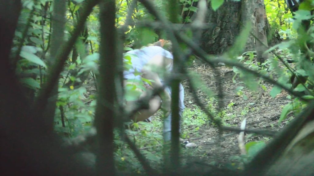 Girl is crouched in a state of primal, unshielded necessity, her denim pulled low to reveal the full, ivory expanse of her rear as it hovers over the earth. The soft, natural light accentuates the supple contours and firm swell of her flesh, which vibrates with the sudden, rhythmic liberation of her internal warmth. From the shadowed crevice between her spread thighs, a vigorous, steaming torrent erupts. Her posture is one of total, unthinking surrender to the wild, her muscles tensed as she fulfills this essential, solitary ritual in the humid silence of the woods.