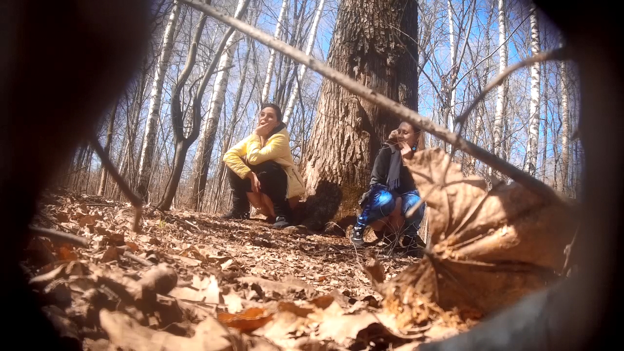 Hidden camera captured the two girlfriends squatting urgently under the tree with jeans yanked down and legs spread wide. Their smooth shaved slits gape open as thick golden piss jets burst out in frantic forceful streams. They clench their thighs desperately trying to hurry the hot urine flow before anyone walks by. Sharp hissing sounds fill the air while their tight cunts pulse rapidly to empty bladders faster. Piss sprays messily from their exposed holes as panic makes them squeeze harder mid-stream.