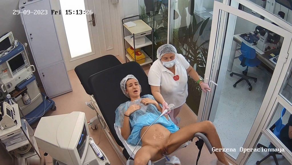 Hidden camera captured the girl lying spread on the exam chair as the doctor slowly pushes the thick ultrasound probe between her tight pussy lips. The lubricated wand slides deep into her slick vaginal canal stretching the walls with firm pressure. She gasps sharply and arches her back feeling every inch invade her sensitive hole. The doctor twists and angles the probe sending intense jolts through her core making her moan uncontrollably. Her body trembles with raw emotion as each movement probes deeper triggering waves of unwanted pleasure and shock.