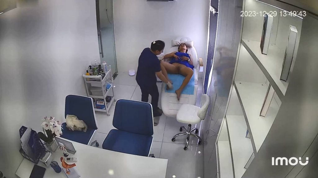 Hidden camera captured the young Asian girl lying on the exam chair with her legs spread wide. The nurse slowly shaved her thick overgrown bush, carefully running the razor across her mound until it was completely smooth. She wiped away the remaining hairs, leaving her tight pink pussy fully exposed and bald. The doctor then spread her freshly shaved labia apart with gloved fingers and slid two fingers deep inside her. He probed her tight vagina thoroughly while she breathed faster from the intense sensation. Her smooth hairless cunt stayed stretched open during the deep gynecological examination.