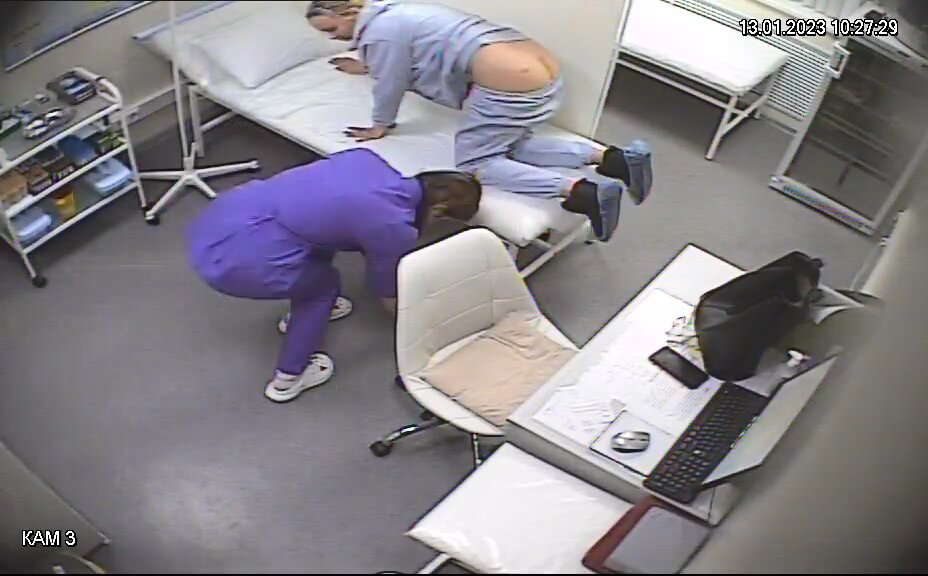 Hidden camera captured the blonde on all fours in doggy style, her firm ass pushed high and ready for the nurse’s injection. Her tight round cheeks spread wide apart, revealing a smooth pink pussy and a tiny wrinkled asshole that looks already stretched like it’s taking a massive cock. She arches her back deeper, making her hole wink and open slightly as if begging for something thick and hard. The position makes her ass look perfectly fucked, with both holes visibly relaxed and inviting. She rocks her hips back and forth slowly, teasingly waiting for the needle while her well-used looking asshole twitches. Every small movement shows how ready her ass is to be filled deep, just like it’s used to taking a huge dick.
