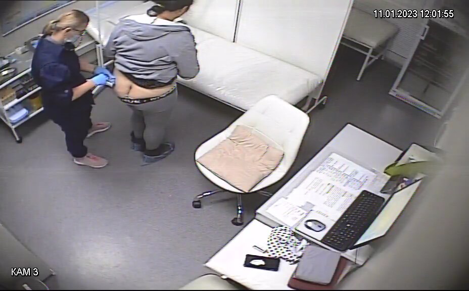 Hidden camera captured the blonde on all fours in doggy style, her firm ass pushed high and ready for the nurse’s injection. Her tight round cheeks spread wide apart, revealing a smooth pink pussy and a tiny wrinkled asshole that looks already stretched like it’s taking a massive cock. She arches her back deeper, making her hole wink and open slightly as if begging for something thick and hard. The position makes her ass look perfectly fucked, with both holes visibly relaxed and inviting. She rocks her hips back and forth slowly, teasingly waiting for the needle while her well-used looking asshole twitches. Every small movement shows how ready her ass is to be filled deep, just like it’s used to taking a huge dick.